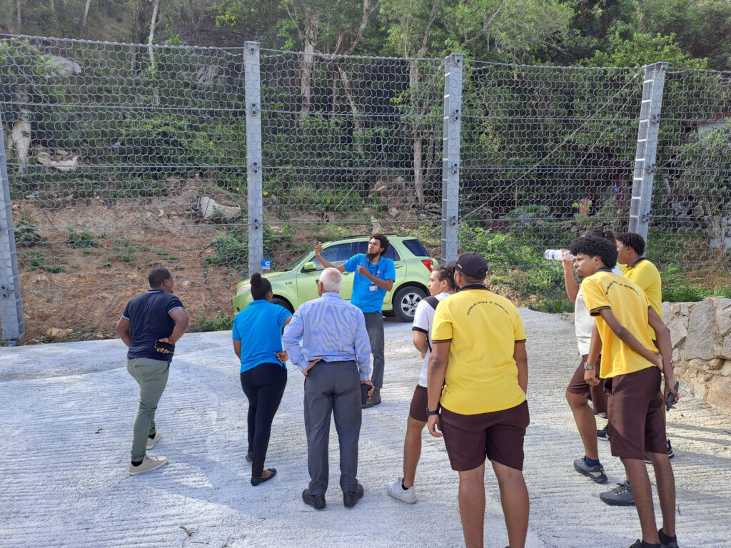 As part of this year’s youth engagement programme commemorating the International Day for Disaster Risk Reduction (IDDRR), the Disaster Risk Management Division (DRMD) partnered with the Seychelles Institute of Technology (SIT) to organise an educational site visit under the St. Louis Hill Stabilisation Project.
