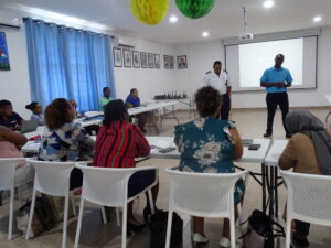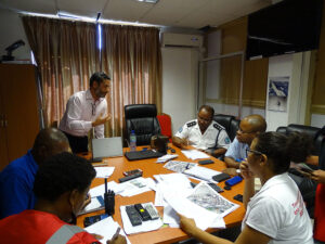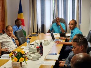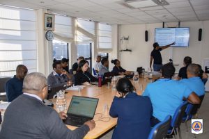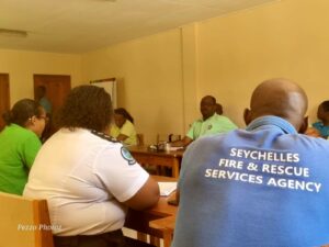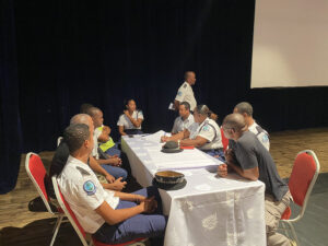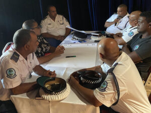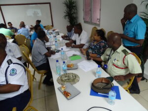 The Planning and Preparedness Unit of the Disaster Risk Management Division meets with the Health and Safety sector of Seychelles Police Force to discuss the revision of the evacuation plan for the Central Police Station